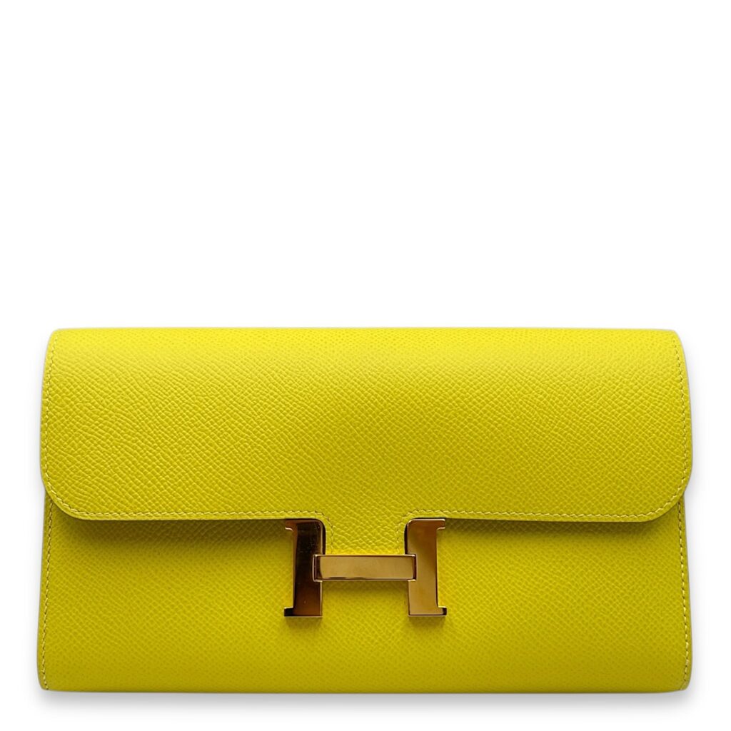 Constance Lime Long Wallet in Epsom, Gold hardware