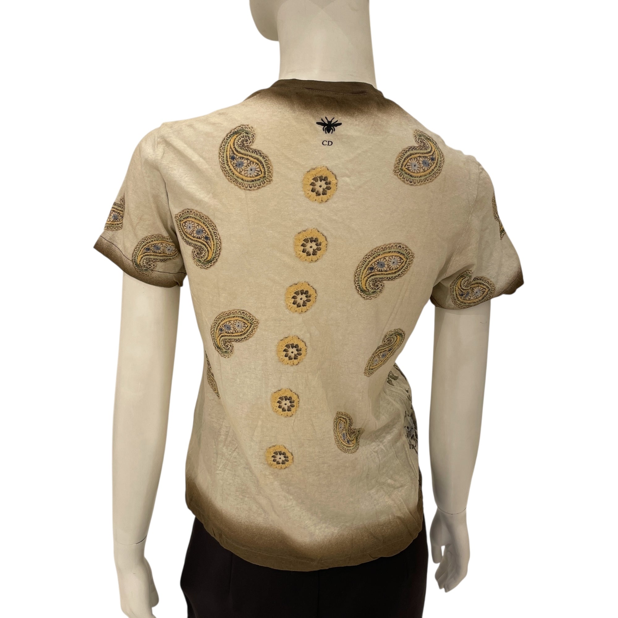 S/S Brown Floral T-shirt XS Brown Ready-To-Wear in Cotton